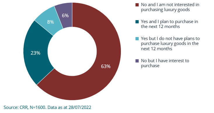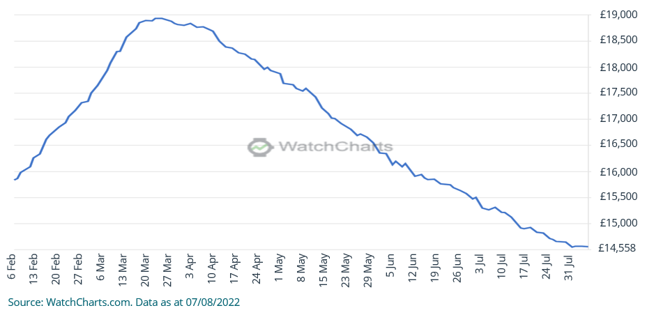 Luxury goods sales in China were greatly impacted by Covid and lockdown. The whole market was down 40% in the last three months, according to Barclays. Burberry just reported China sales down 35% YoY, in the previous quarter; Richemont said China was down 37%. According to a survey conducted by CLSA, over 63% of 1600 people asked do not plan to purchase luxury goods in the next 12 months. This number was 54% in November 2021. Watches have a higher ASP among the categories. The index tracking the price of the global high-end luxury watch market published by WatchChart shows the average price has dropped 25% since its peak in late March. In China, second-hand distributors report that since March, the price of best-selling Rolex and Patek Philippe models has dropped 40 – 50%.